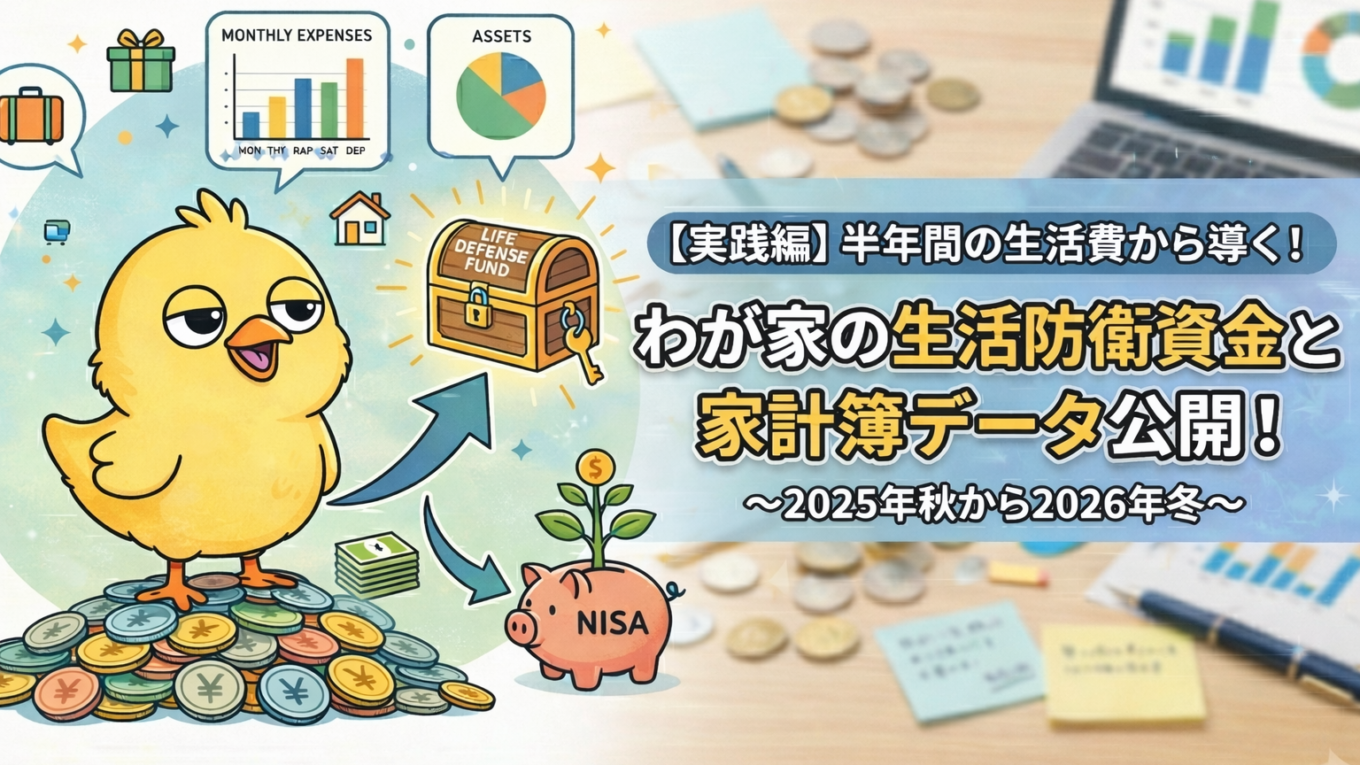 記事内に商品プロモーションを含む場合があります 色々書いています。いわゆる雑記ブログというやつです。 ブログマップ【祝・100記事達成】「ひよこファミリーまったりライフ研究所」の歩みと全カテゴリー紹介! 新着記事News 【2025年秋〜2026年冬】生活防衛資金はいくら持てば安心?リアルな家計簿データから導き出す「わが家の最適解」 2026.04.10 お金と人生設計 2026年4月度 投資資産公開:再び2,500万円突破!一時の調整を越えて再び資産増 2026.04.10 資産形成・投資 【祝・100記事達成】「ひよこファミリーまったりライフ研究所」の歩みと全カテゴリー紹介! 2026.04.03 働き方・キャリア お金と人生設計 (73) 休職・メンタルケア (18) 働き方・キャリア (17) 国内旅行 (8) 家計管理・節約 (19) 旅とローカル散歩 (6) 暮らしの体験とレビュー (14) 買ってよかったもの (12) 資産形成・投資 (30) 当ブログの人気記事Popular Post ホテル日航姫路 クラブラウンジ体験記 1672 views ホテル日航姫路 朝食バイキング体験記 146 views 2025年12月買ってよかったもの|みてねおもいでフォトフレームを祖母にプレゼント! 139 views 意外と知らない?ベネフィットステーションを使い倒す「ひよたろ流」活用術 84 views 2026年1月買ってよかったもの|ギュット・クルーム後用レインカバーPito 81 views 危険物取扱者試験(甲種)- ギリギリ合格体験記 – 70 views 家計の救世主!山梨初出店のラムーで買うべき「神コスパ」BEST3 59 views 朝から呑んで、マンガとサウナで悦に入る。姫路で過ごす「男の一人休日」満喫レポート 49 views ひよたろ30代前半、男、関西在住Profile理系大学→大学院→JTC研究職→休職中 結婚・子育てで生活が一変し、仕事との両立に悩みました。 その中で家計を見直し、節約とインデックス投資を続けてきました。 自分の試行錯誤の記録として、資産形成・家計管理・休職中の気づきなどを発信しています。プロフィールを読むXContact