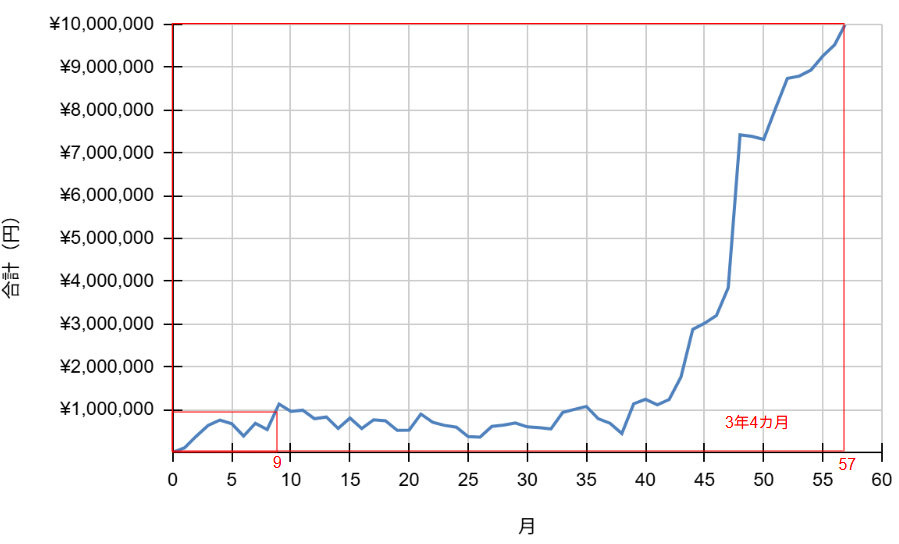 【この時期の結論】 この方法でも時間はかかりますが100万円は貯まります。しかし、貯蓄スピードは遅く、資産形成のロードマップは全く描けていませんでした。
