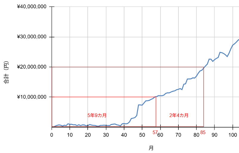 達成までの道のりと内訳:複利の力が加速!
