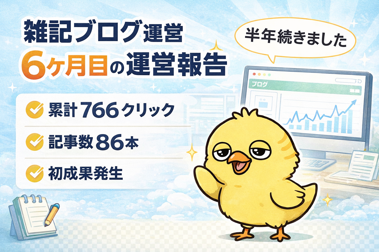 雑記ブログ運営6ヶ月目の運営報告|合計クリック数・総収益・記事数を公開
