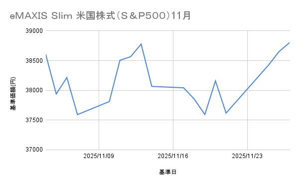 この数値は、11/13に記録した38,778円を超え、設定来の過去最高値となります。米国株式市場、特にS&P500指数を構成する優良企業の安定した成長力が、このファンドの価値を着実に高めていることを示しています。