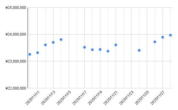 今回の基準価額の最高値更新は、この高比率の米国株資産を通じて、ポートフォリオ全体に波及し、結果として含み益が過去最高を記録する形となり、2400万円到達が目前となりました。