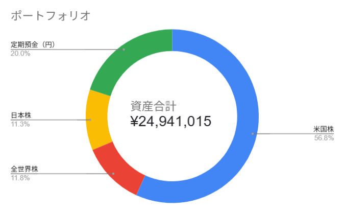 ポートフォリオ構成:米国株56.8%の安定感