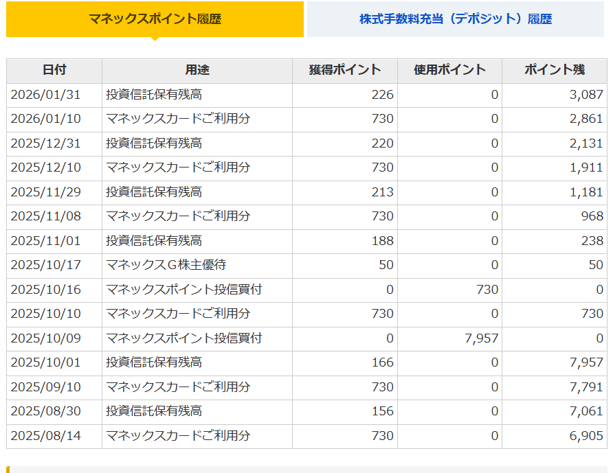 - 投資信託の保有(投信保有ポイント):約226pt / 月(※2026年1月実績)