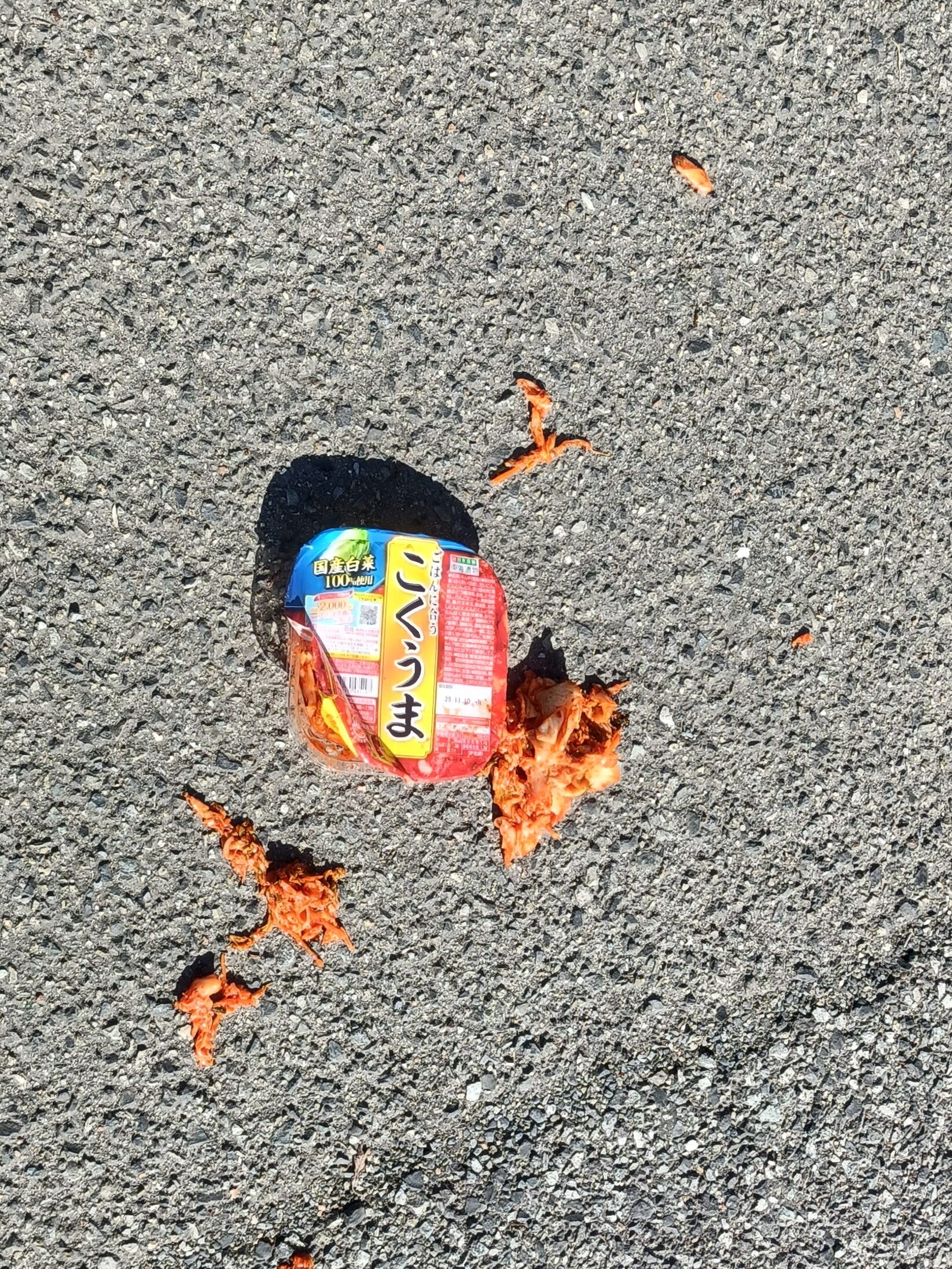 (ひよたろはキムチを路上に落として絶望を味わいました。)
