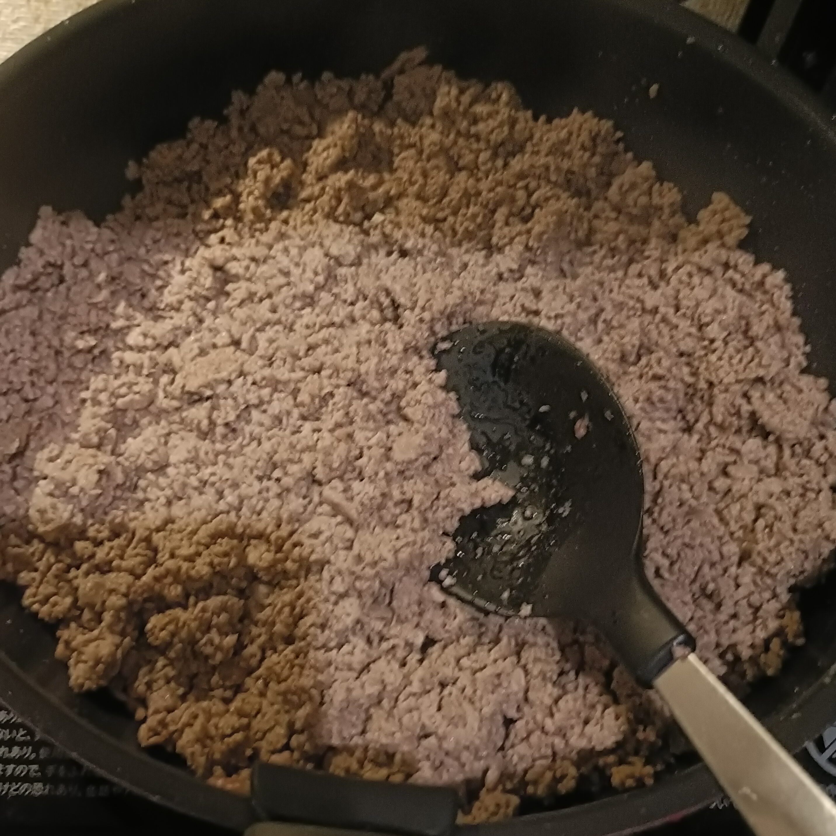 ※写真では作り置き用に牛豚合いびき肉600g以上を使って調理しています。